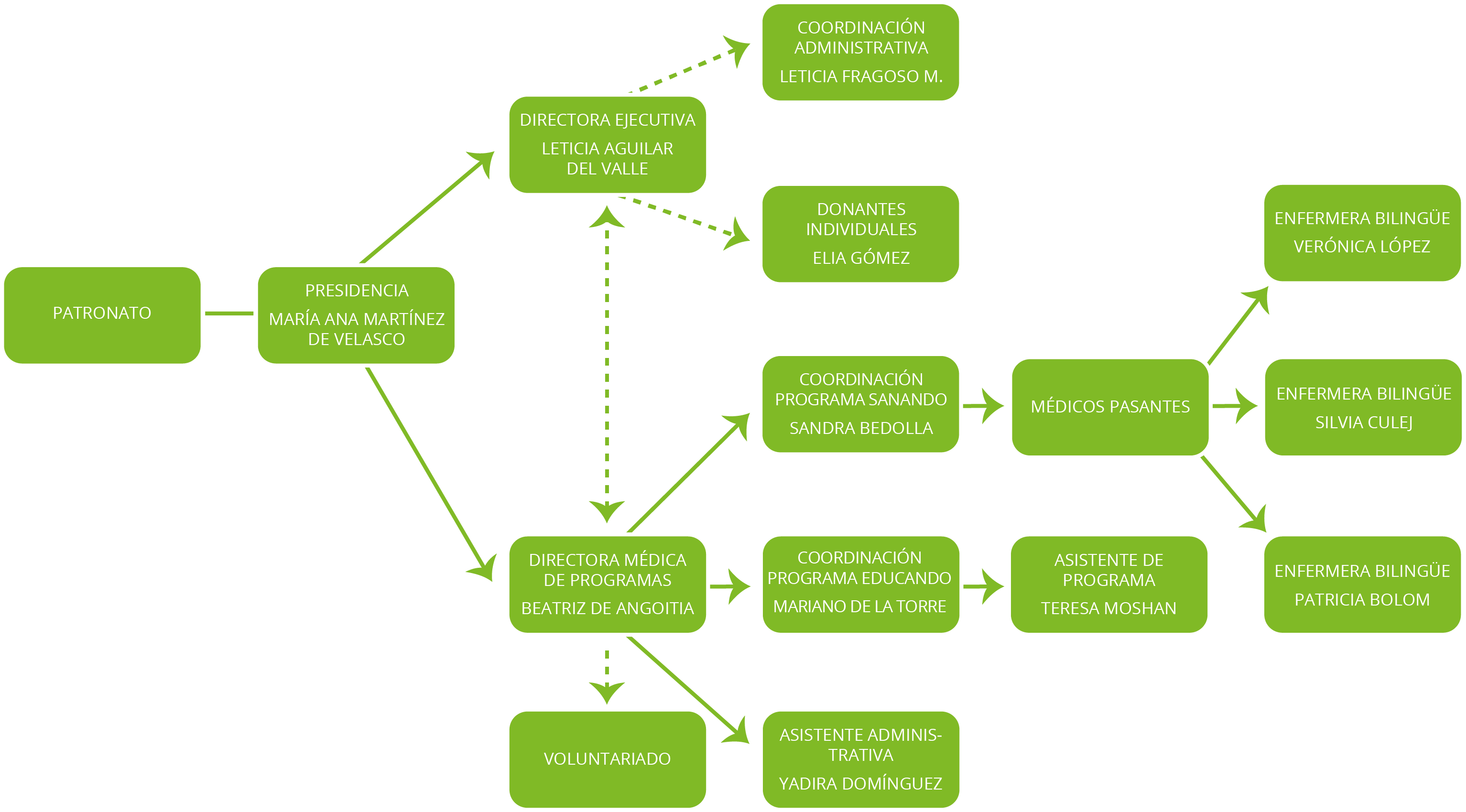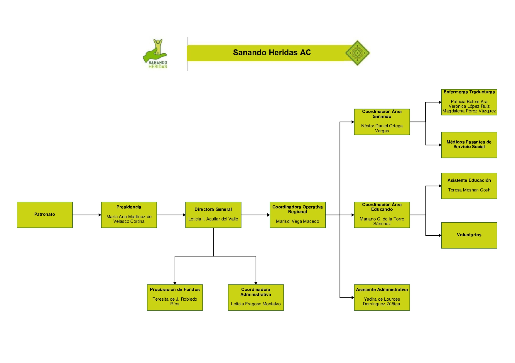 Contamos con un consejo directivo de alto nivel comprometido con el cumplimiento de la misión de Sanando Heridas, que involucra sus recursos económicos, empresariales y personales con cada una de las áreas operativas para la optimización de los ingresos, de tal manera que la mayor parte de los donativos lleguen a las comunidades.